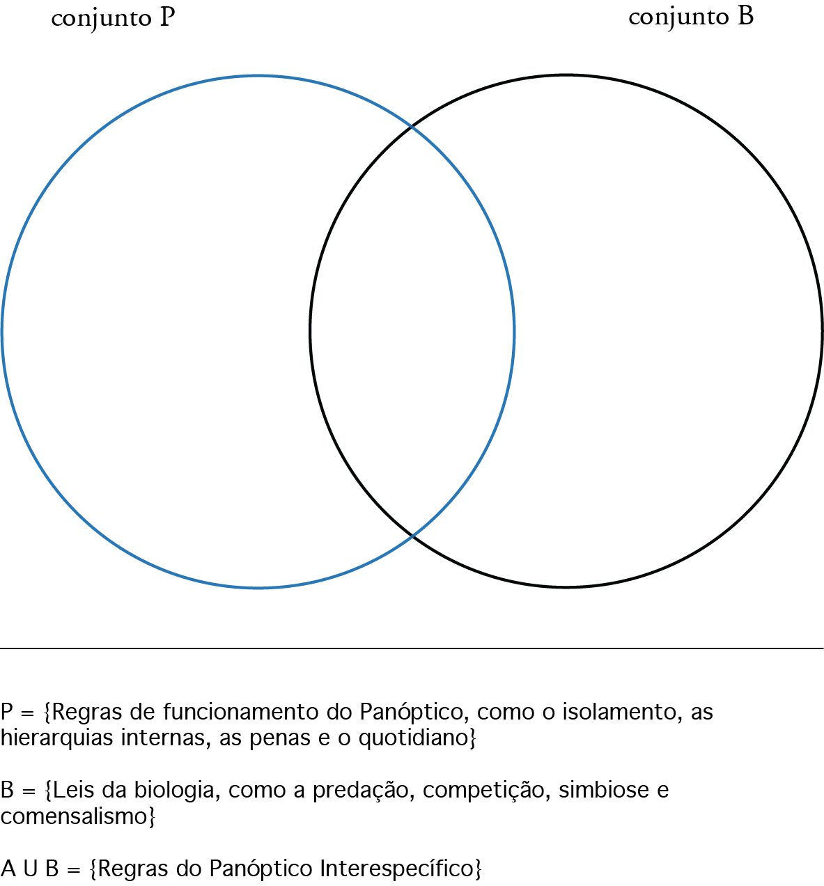 3. Elaboração de um diagrama de Venn em que o primeiro conjunto é relativo às Leis dos Homens (leis do Panóptico), reservando-se o segundo conjunto às leis dos peixes (leis biológicas dos peixes). A intercepção dos dois conjuntos ou zona comum deverá resultar nas Leis do Panóptico Interespecífico;